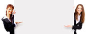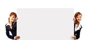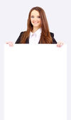 szczęśliwy grupa młodych stojąc razem i przytrzymanie puste pusty znak tekstu