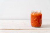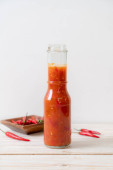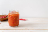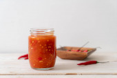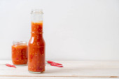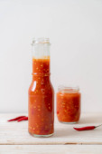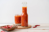 chili lub sos chili w butelce i słoiku na wwod tle