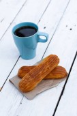 kubek kawa i ciasteczka w formie serca na słomy ryżowej bac