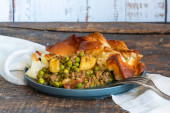 Zdjęcie "Placek rybny z halibutem, okoniem morskim i krewetkami królewskimi" może być wykorzystywane do celów osobistych i komercyjnych zgodnie z warunkami zakupionej licencji Royalty-free. Obraz jest dostępny do pobrania w jakości wysokiej rozdzielczości do 5760x3840.