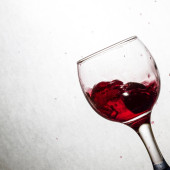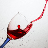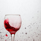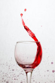 romantyczny napój alkoholowy czerwone wino pluskające się w szklance na szarym abstrakcyjnym tle z plamkami