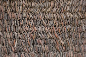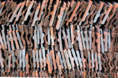czerwone płytki leżą w rzędach zbliżenie. szorstka faktura powierzchni