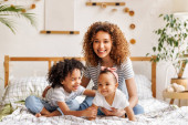 Zdjęcie "Cute little boy syn gratulacje jego mama szczęśliwy mieszany wyścig kobieta z dniem matki, przytula ją i śmieje się siedząc razem na kanapie w domu. Koncepcja urlopu rodzinnego" może być wykorzystywane do celów osobistych i komercyjnych zgodnie z warunkami zakupionej licencji Royalty-free. Obraz jest dostępny do pobrania w jakości wysokiej rozdzielczości do 5760x3840.