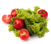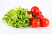 świeżych pomidorów i sałaty na białym tle nad białym