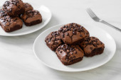 ciemne czekoladowe ciasteczka z czekoladowymi frytkami na wierzchu