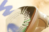 Plastikowe ucho z nowoczesnym aparatem słuchowym. Żadnych ludzi.