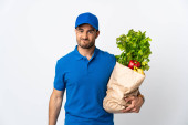 Zdjęcie "Dostawca z warzywami odizolowanymi na białym tle świętuje zwycięstwo" może być wykorzystywane do celów osobistych i komercyjnych zgodnie z warunkami zakupionej licencji Royalty-free. Obraz jest dostępny do pobrania w jakości wysokiej rozdzielczości do 5760x3840.