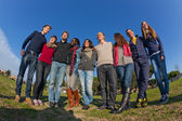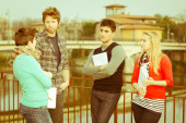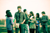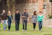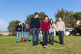 studentów chodzić i mówić w parku