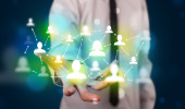 młody biznesmen prezentacji nowoczesnych technologii sieć społeczną ma
