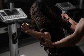 W stroju ratownika medycznego na siłowni. Trening sportowy w elektrycznym kombinezonie do stymulacji mięśni.