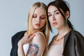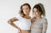 Dwie gorące kobiety pozujące na białym tle