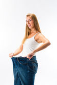szczupły młoda kobieta na białym tle