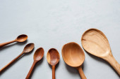 Różne drewniane łyżki na tle koloru