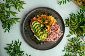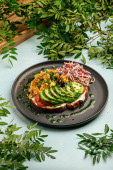 Zdjęcie "Tosty z grillowanym awokado i sałatką " może być wykorzystywane do celów osobistych i komercyjnych zgodnie z warunkami zakupionej licencji Royalty-free. Obraz jest dostępny do pobrania w jakości wysokiej rozdzielczości do 5760x3840.