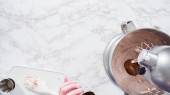 Zdjęcie "Leżeć płasko. Krok po kroku. Składniki mieszające w stojącym mikserze kuchennym do przygotowania polewy serowej." może być wykorzystywane do celów osobistych i komercyjnych zgodnie z warunkami zakupionej licencji Royalty-free. Obraz jest dostępny do pobrania w jakości wysokiej rozdzielczości do 5760x3840.
