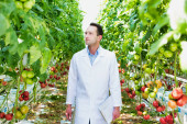 Zdjęcie "inspektor jakości w białym płaszczu patrząc przed kamerą, podczas gdy afrykański amerykański kolega pracuje na niewyraźnym tle" może być wykorzystywane do celów osobistych i komercyjnych zgodnie z warunkami zakupionej licencji Royalty-free. Obraz jest dostępny do pobrania w jakości wysokiej rozdzielczości do 5760x3840.
