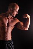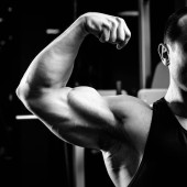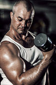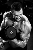 silny i muskularny mężczyzna instytucji szkoleniowej w siłowni.