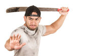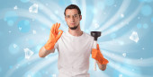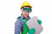 człowiek z śrubokręt strój ochronny