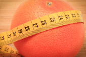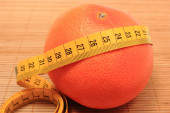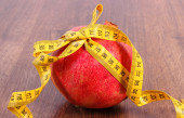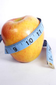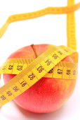 Świeże jabłko i taśma. Odchudzanie, zdrowy tryb życia i odżywianie