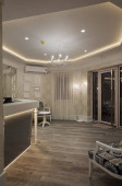 Zdjęcie "nowoczesne wnętrza apartamentu z ręcznie robione meble i sprzęt oświetleniowy." może być wykorzystywane do celów osobistych i komercyjnych zgodnie z warunkami zakupionej licencji Royalty-free. Obraz jest dostępny do pobrania w jakości wysokiej rozdzielczości do 5760x3840.