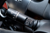 Generyczna dźwignia sterowania reflektorem samochodowym makro strzał z bliska.