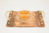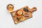 Skład z filiżanek smacznej herbaty imbirowej i składników na białym tle