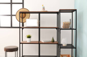 Zdjęcie "Półka z wystrojem w pobliżu ściany światła w pokoju" może być wykorzystywane do celów osobistych i komercyjnych zgodnie z warunkami zakupionej licencji Royalty-free. Obraz jest dostępny do pobrania w jakości wysokiej rozdzielczości do 5760x3840.