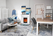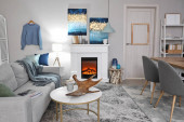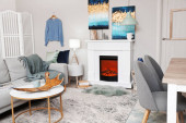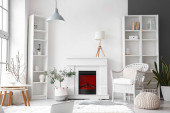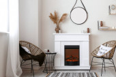 Zdjęcie "Wnętrze nowoczesnego pokoju z kominkiem" może być wykorzystywane do celów osobistych i komercyjnych zgodnie z warunkami zakupionej licencji Royalty-free. Obraz jest dostępny do pobrania w jakości wysokiej rozdzielczości do 5760x3840.