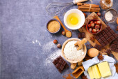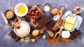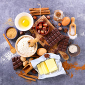 różne pieczenia żywności - składnik do gotowania ciasto czekoladowe lub ciasteczka