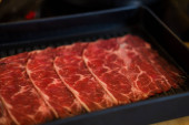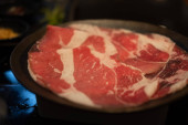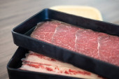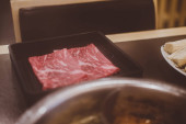 Wysokiej jakości świeża surowa cienka wołowina w plasterkach dla Shabu Shabu lub Yakiniku