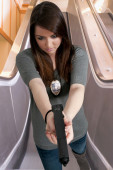 piękne policji kobieta detektyw w pracy z pistoletu