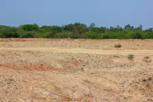Puste suche pęknięte bagna rekultywacja gleby, działka pod zabudowę projektu budowlanego z odciskami opon samochodowych na obszarach wiejskich i piękne błękitne niebo ze świeżym powietrzem Grunty pod koncepcję krajobrazu sprzedaży