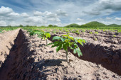 Zdjęcie "Puste suche pęknięte bagna rekultywacja gleby, działka pod zabudowę projektu budowlanego z odciskami opon samochodowych na obszarach wiejskich i piękne błękitne niebo ze świeżym powietrzem Grunty pod koncepcję krajobrazu sprzedaży" może być wykorzystywane do celów osobistych i komercyjnych zgodnie z warunkami zakupionej licencji Royalty-free. Obraz jest dostępny do pobrania w jakości wysokiej rozdzielczości do 5760x3840.