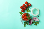 Miska greckiej sałatki i taśma pomiarowa na różowym tle