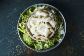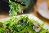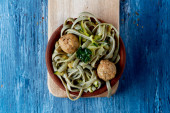 Zdjęcie "wysoki kąt widzenia drewnianej płyty z niektórych tagliatelle orkisz, jarmuż, fasola edamame, tofu i grzyby shiitake" może być wykorzystywane do celów osobistych i komercyjnych zgodnie z warunkami zakupionej licencji Royalty-free. Obraz jest dostępny do pobrania w jakości wysokiej rozdzielczości do 5760x3840.