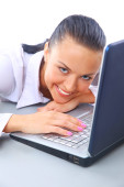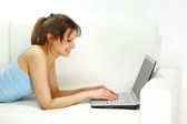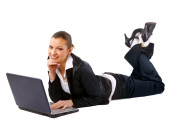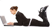 Zdjęcie "młoda kobieta jest na podłodze i pracy na laptopie" może być wykorzystywane do celów osobistych i komercyjnych zgodnie z warunkami zakupionej licencji Royalty-free. Obraz jest dostępny do pobrania w jakości wysokiej rozdzielczości do 5760x3840.