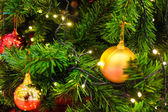 Boże Narodzenie piłka drzewo z zamazanym bokeh abstrakcyjny tło kopia przestrzeń wesoły Boże Narodzenie Szczęśliwy nowy rok