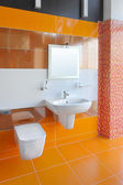 Nowoczesna łazienka w kolorach zielono pomarańczowy