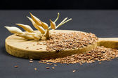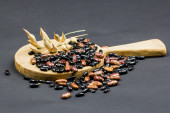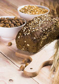 deska do krojenia, czarny i brązowy fasola i ekologiczny chleb