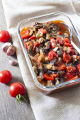 Zdjęcie "Tradycyjna włoska Caponata i toast na drewnianym białym stole. Kaponata sycylijska." może być wykorzystywane do celów osobistych i komercyjnych zgodnie z warunkami zakupionej licencji Royalty-free. Obraz jest dostępny do pobrania w jakości wysokiej rozdzielczości do 5760x3840.