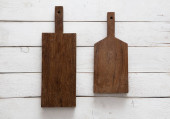 Różne drewniane deski do cięcia na białym tle. Płyty kuchenne