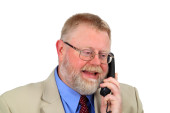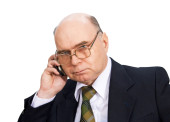 człowiek w garniturze rozmowy na telefon komórkowy. białe tło.