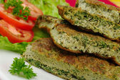 Omlet z ziołami z jego składników w tle (selektywne Focus)