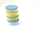 kontener magazynowy plastikowe jedzenie na białym tle.