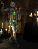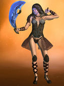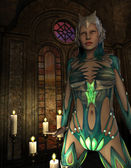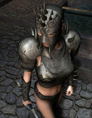 3D renderowania warrioress w srebrnej zbroi na złoty sanktuarium