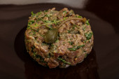 Zdjęcie "Surowa wołowa przekąska tatarska z kaparami" może być wykorzystywane do celów osobistych i komercyjnych zgodnie z warunkami zakupionej licencji Royalty-free. Obraz jest dostępny do pobrania w jakości wysokiej rozdzielczości do 5760x3840.