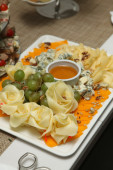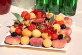 różne owoce na śniadanie w formie bufetu na platte
