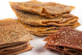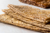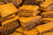 Turecki miąższ pestycydów / suszonych owoców z sezamem. Miąższ morwy (pestyl) z suszonymi morwami. Suszona miazga owocowa Mulberry. Miąższ suszonych owoców w stylu tureckim jako przekąska.
