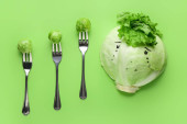 Świeżo krojona kapusta na kolorowym tle