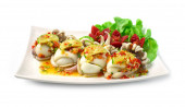 Chrupiący brzuch Wieprzowina Mieszać smażone z chili i soli Spicy smaczne danie Fusion Kombinacja tajskie jedzenie i chiński styl żywności sideview